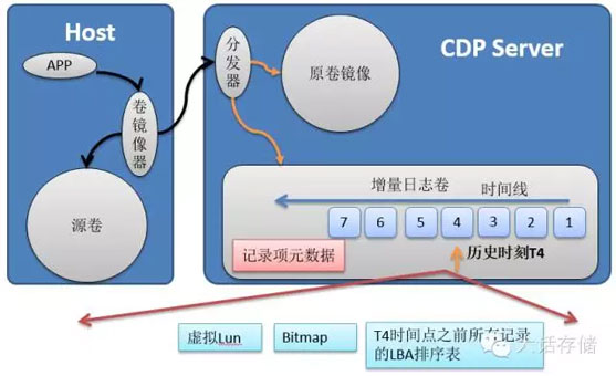 块级CDP的底层机制需要在一个单独设备中,先将源卷镜像一份出来。如下图所示: