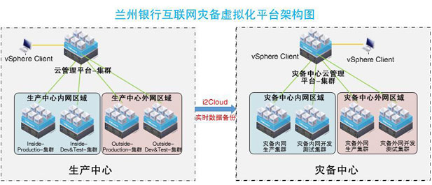 在这样的背景下,兰州银行与英方携手,通过在灾备机房搭建一套互联网灾备虚拟化平台,来实现互联网业务的灾备,依靠英方的灾备软件实现主生产中心业务数据实时备份到灾备中心。