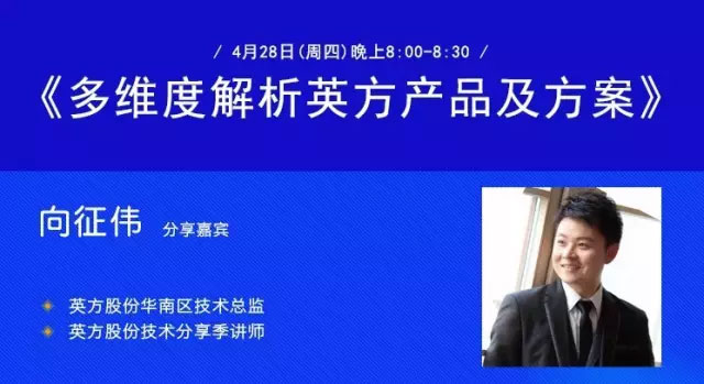 4月28日晚20:00点,英方技术分享季第一期正式开始,英方股份华南区技术总监向征伟为带来了《多维度解析英方产品及方案》。今天,就让我们一同回顾一下此次分享的精彩内容: