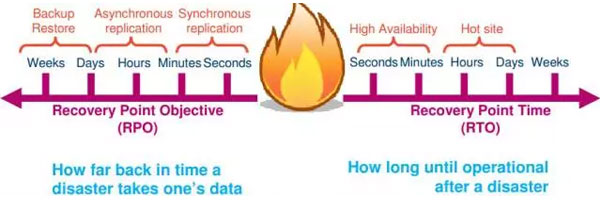 衡量容灾系统有两个主要指标:RPO(Recovery Point Objective)和 RTO(Recovery Time Object),其中 RPO代表 了当灾难发生时允许丢失的数据量,而 RTO 则代表了系统恢复的时间。RPO 与 RTO 越小,系统的可用性就越高,当然用户需要的投资也越大。
