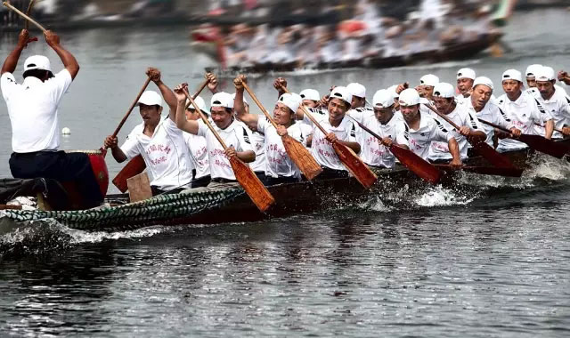 相传起源于古时楚国人因舍不得贤臣屈原投江死去,许多人划船追赶拯救。他们争先恐后,追至洞庭湖时不见踪迹。之后每年五月五日划龙舟以纪念之。借划龙舟驱散江中之鱼,以免鱼吃掉屈原的身体。(来源网络)