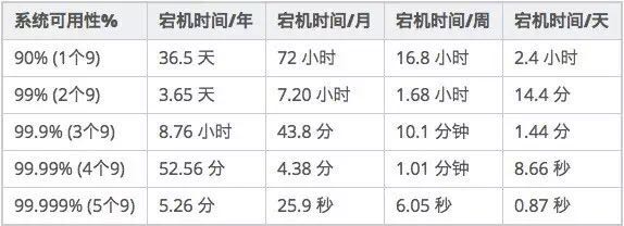 我们不可能做到 100% 的高可用,也就是说,我们能做到几个9个的SLA。