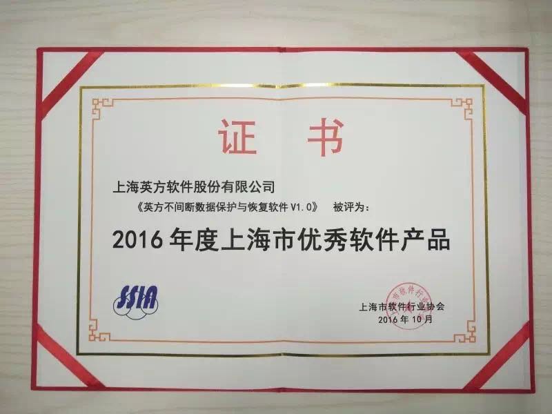 上海英方软件股份有限公司荣获了“2016年度上海市明星软件企业(快速增长型)”奖项,同时英方不间断数据保护和恢复软件_i2CDP荣获了“2016年度上海市优秀软件产品“奖项。