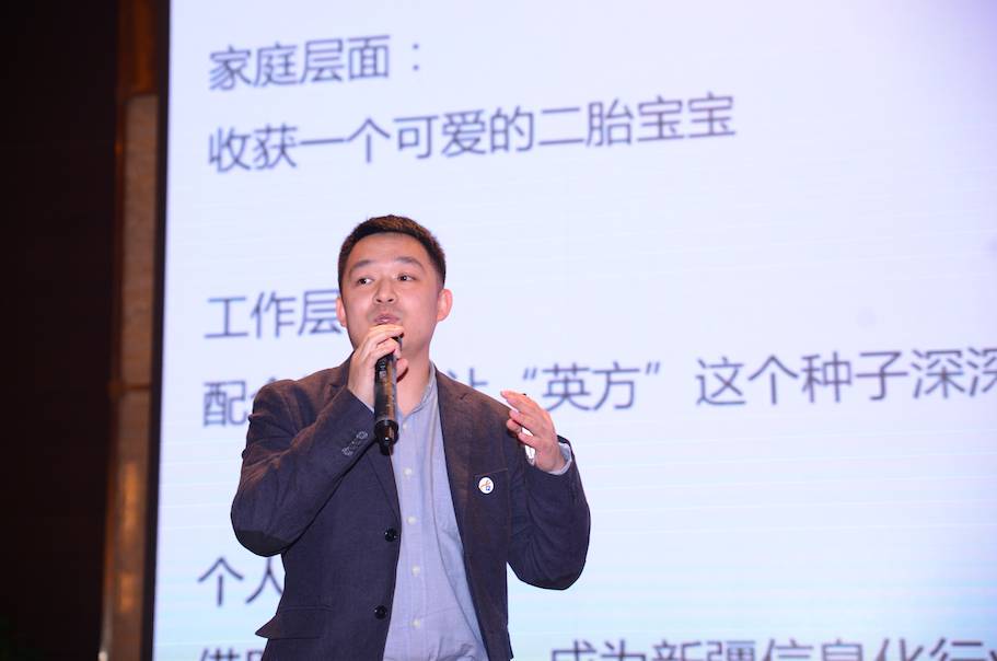来自西北区的李光先生代表售前顾问团队进行分享,这一年他收获了可爱的二胎宝宝;配合销售,让“英方”这个种子深深扎根在祖国1/6面积的土地上,并且长势良好,借助英方平台,成为新疆信息化行业的“容灾备份”专家。
