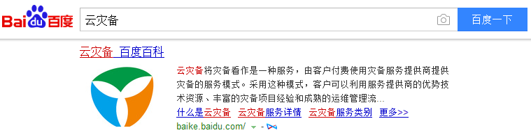 甲在百度上敲了“云灾备”,马上就跳了出来: