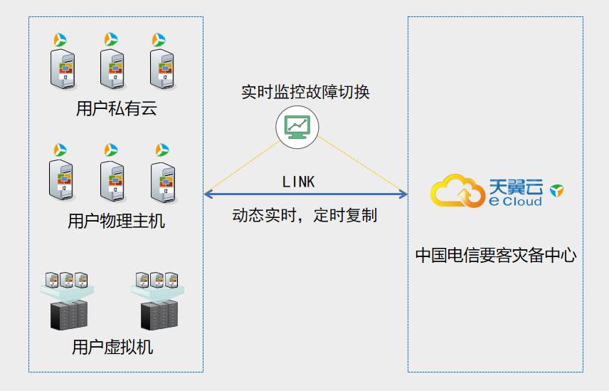 第一步是进行容灾中心业务系统的快速部署,将生产机的操作系统、应用软件、业务数据在线无停机迁移至容灾中心(天翼云平台、西安要客灾备中心、同城电信IDC中心);