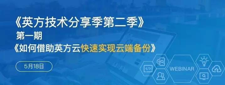 5月18日,本周四晚20:00,英方股份产品经理张高翾将进行《如何借助英方云快速实现云端备份》的分享,这也揭开了自去年英方股份技术分享季首季开启后的第二季分享,第二季我们将更多就操作和实践进行分享,除了第一期的云灾备,之后还会有包括迁业务移、应用高可用、数据库双活等多方面的分享,欢迎大家持续关注。