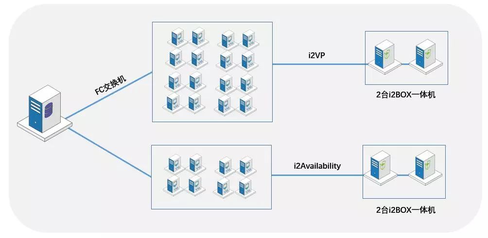 针对以上需求建设分析,在方案的总体建设上,除了混用HA架构,还包括:其一为了规避逻辑错误或者误操作带来的数据丢失,需要在业务容灾环境系统部署适用于本地/异地/云端场景的应用级容灾软件i2Availability;其二通过英方i2VP实现Vmware虚拟化的无代理备份,无需在每台虚拟机中安装客户端,即可实现大规模的虚拟机备份,无需占用大量的内存、CPU计算资源等。