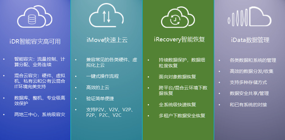 特别是在实时性数据复制、持续数据保护、数据库同步复制和异地高可用,以及在iDR智能容灾高可用、iMove快速上云、iRecovery智能恢复、iData数据管理等整体的技术方案方面,明显领先同行的平均水平。