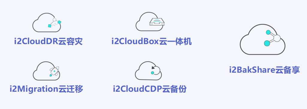 针对这些需求,程权表示,英方云近期推出了全新的SaaS产品服务,包括i2Migration(云迁移)、i2CloudCDP(云备份)、i2CloudDR(云容灾)、i2CloudBox(云一体机)和i2BakShare(云备享)。