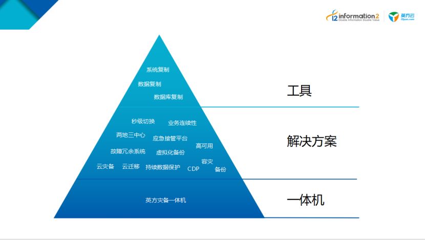 除了智能化之外,数据管理则是灾备边界的延伸。从硬件存储到软件定义存储,再到对象存储管理,数据量的持续增加带来的管理难题给存储行业带来了新的变化。数据灾备也已成为各行各业IT资产保护的标配,灾备建设呈现出普及化、规模化的特点。基于行业的特点,英方独有的先进的灾备技术和开放的生态理念,可以满足不同用户在不同灾备层级、不同交付模式的需求。
