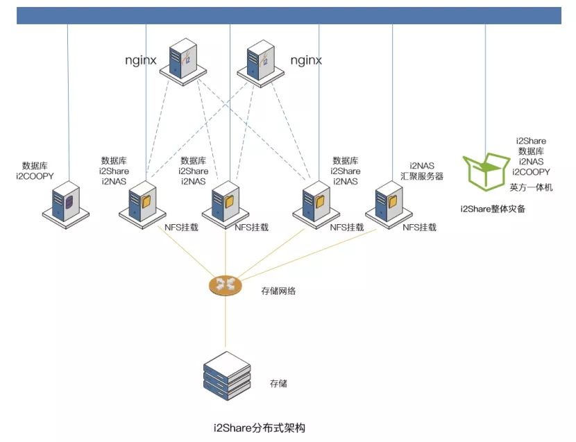 根据菏泽监狱具体IT环境,经过前期缜密的分析与测试,最终采用分布式的方式进行i2Share的私有化部署。i2Share基于私有云架 构,部署在企业内部,实现办公桌面文件数据的集中存储。