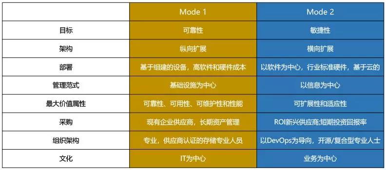 金融行业的发展越来越依仗金融科技的不断创新,而金融每一次金融科技的创新的背后都是金融业务创新使然。在创新的常态下,原有业务与新业务之间的竞合关系恰恰是金融行业双模IT趋势的真实写照。原有业务追求的是可靠、可用和低成本,适用于那些需求明确、增量可预测的业务,数据以结构化数据为主。比如工作日柜台的业务数量;而新业务的总体需求量在规划阶段并不明确,具有一定的探索性和偶然性。比如一次节日促销活动或者一次大范围的消费者行为分析,数据以非机构化数据为主。