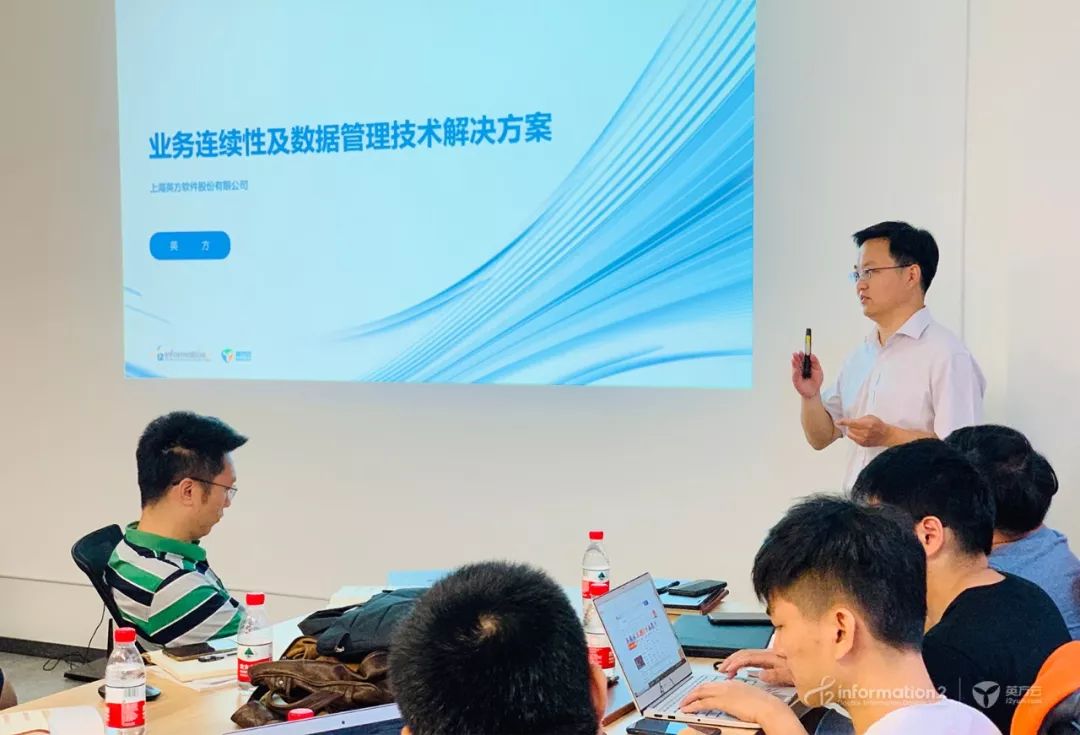 英方CTO周华着重介绍了英方的产品,其产品生态涵盖了备份、容灾、大数据以及数据管理四大领域,产品的技术原理主要是字节级复制和数据库语义级实时数据同步以及云灾备技术。期间,周华还详细的为学员介绍了每个产品的产品特点和应用场景等,让学员们能够深入全面的了解英方的各产品线,有效的帮助学员在之后和客户的交流过程中,能够更好的帮助客户理解英方产品。
