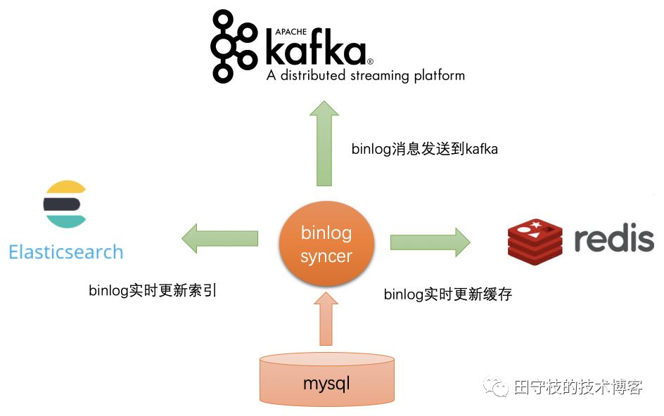 为什么划分成两块独立的功能?因为binlog订阅解析的实际应用场景并不仅仅是数据同步,如下图: