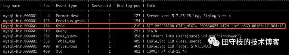 SET GTID_NEXT= '09530823-4f7d-11e9-b569-00163e121964:1’insert into users(name) values("tianbowen")