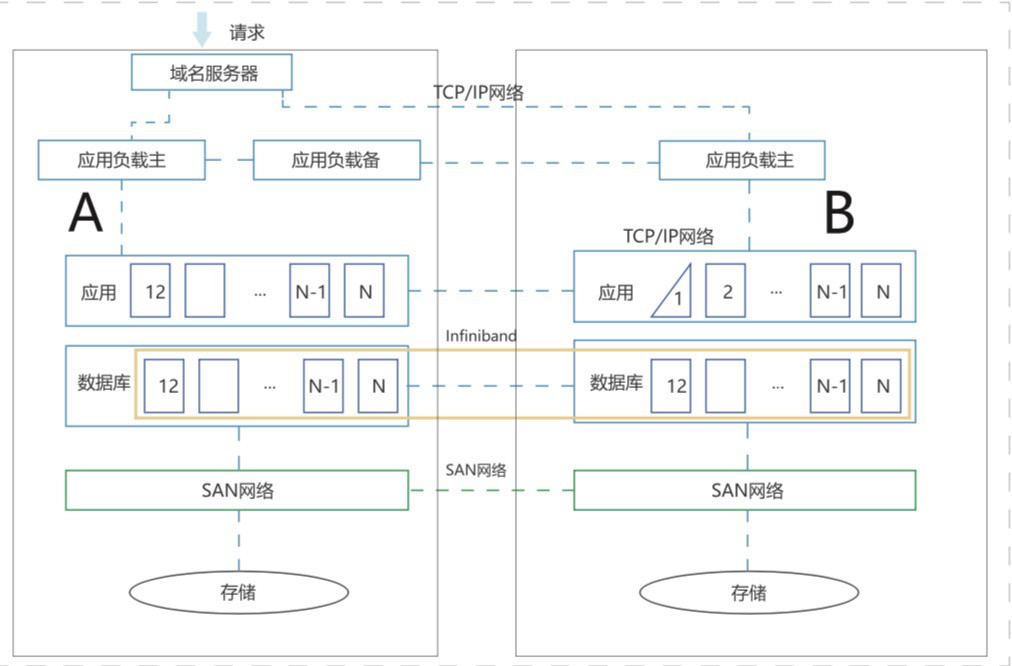 真正意义的双活指两个数据中心同时处于生产状态,类似于负载均衡技术,但通常的负载均衡针对于业务流量而非数据保护和数据安全,启用所有资源共同承载业务的服务,同时保证当其中一边发生故障时,另一边的资源可直接接管所有的业务服务。