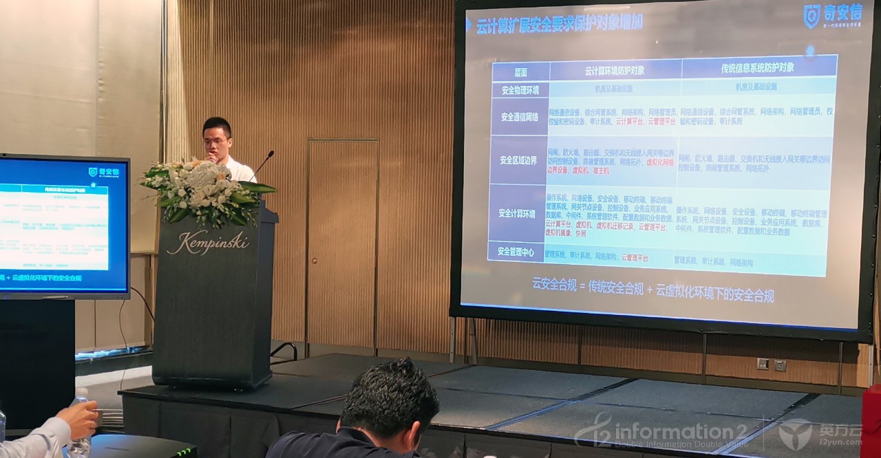 奇安信龚吉做了主题为云上安全解决方案的演讲,基于当前用户业务上云势头强劲,而云上安全事故频发,用户对云上安全的关注日益加深。龚吉表示奇安信云安全产品能够全面满足等保要求,为用户提供开放的云安全生态。奇安信将始终把用户安全放在第一位,专注于减少企业在云平台上的安全隐患。