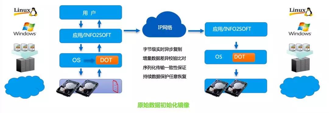 不过随着相关软件方案的出现,逐渐解决了这个问题,比如英方的i2COOPY,它就是模拟了硬件操作技术,通过在操作系统层安装一个代理程序捕获I/O操作,通过网络将I/O操作传输出去实现与存储复制类似的功能。它的优点主要是和应用无关,非常贴近于底层,可以同步一个库,也可以同步一个文件;既可以做应用高可用也可以做数据库高可用。