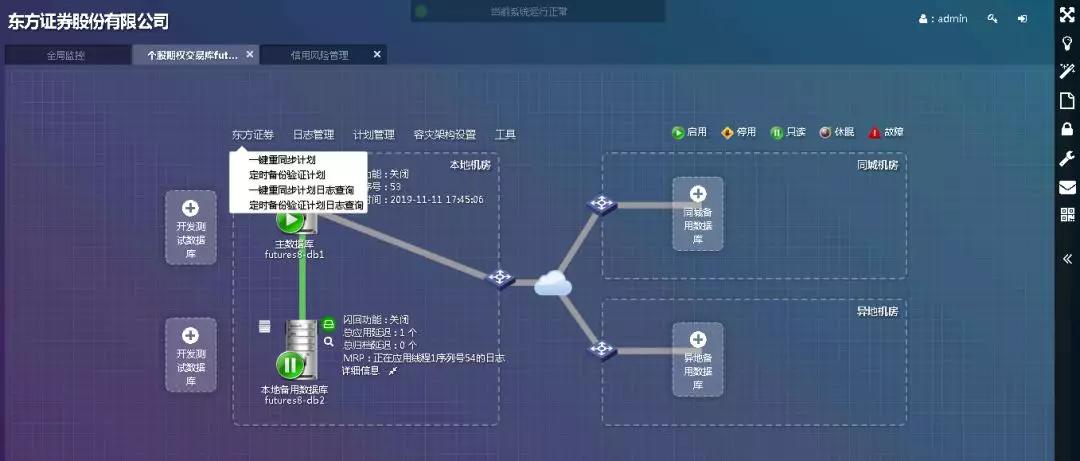 以东方证券一个多系统复杂架构为例:场外交易平台本身是一个大的主库,承担账户、交易和经管三大主业务。纵向来看,备库要求做到读写分离,采用“白石”数据库同步的方案。横向来看账户主和交易主还要将数据实时写回到经管主库上,做实时报表和分析功能,采用“白石”数据同步方案;但经管库自己也要做读写分离,运用“黑石”数据复制方案。这就是一个由“五白一黑”组成的高可用架构。