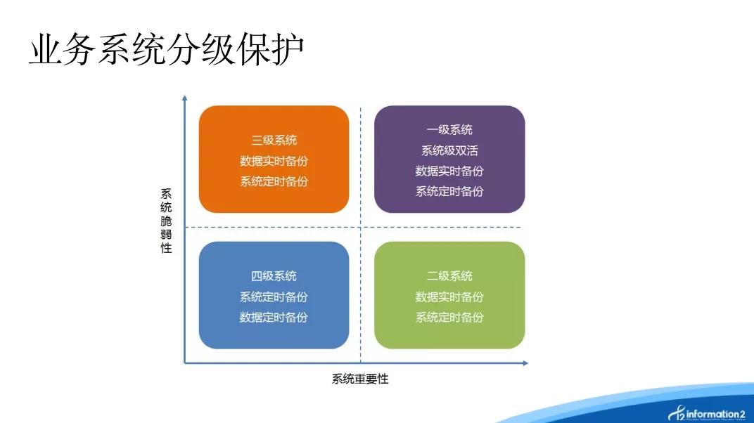 之后,西北区域销售总监陈骏和大家分享了如何从外部、内部、整体的三个维度对用户系统的实际情况进行业务系统重要性和脆弱性评估,并结合评估结果决定灾备项目实施过程中的关键指标和技术方案。