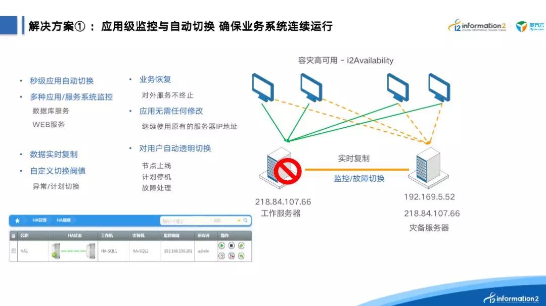而目前大部分用户数据保护面临着传统备份RPO大、双机双柜部署距离受限、存储双活成本高等不足和问题。英方基于完备的产品生态,为解决用户实际需求,提供了完善、全面的解决方案,如软件定义两地三中心、操作系统字节级同步、数据库语义级同步、在线业务系统迁移、高可用备份一体机等,并为沙特运营商ZAIN、甘肃公安厅、海通证券等保障了数据安全和业务连续性。