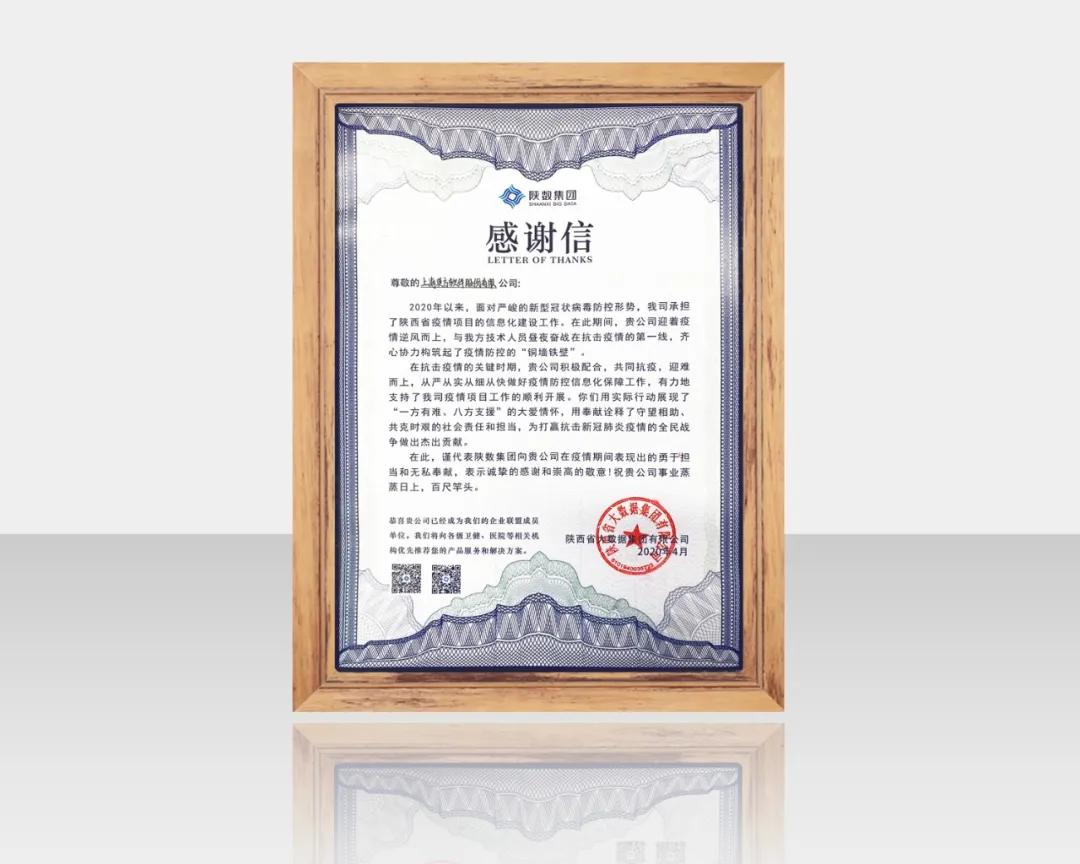 英方人的努力获得了用户的认可,陕西大数据集团专门发来一封感谢信。