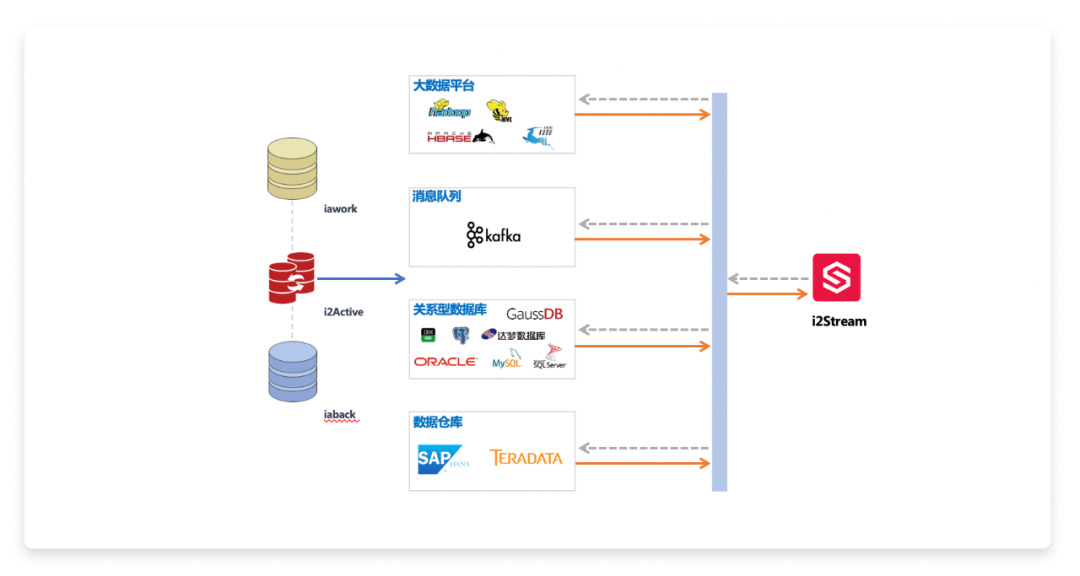- 异构数据库数据的实时流通、交互,帮助用户完成核心数据的迁移、同步。