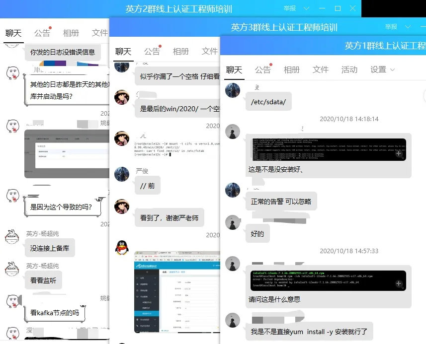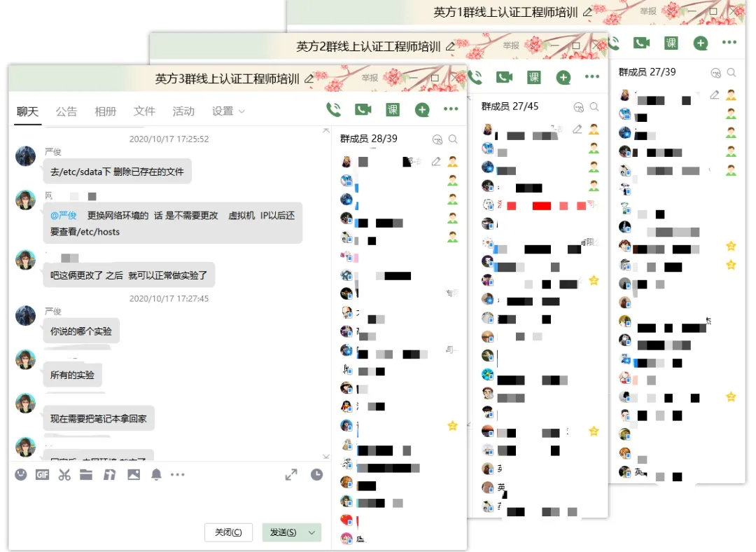 本次培训吸引了全国近百位工程师的报名参与,各行各业优秀的工程师群聚云上,就灾备行业与英方产品等内容在线上展开了热烈讨论。老师每天在群内集中答疑和在线辅导,确保学员及时掌握所有知识点和关键技能。经过三天学习,工程师们表示培训内容干货满满,学习形式十分灵活、高效。