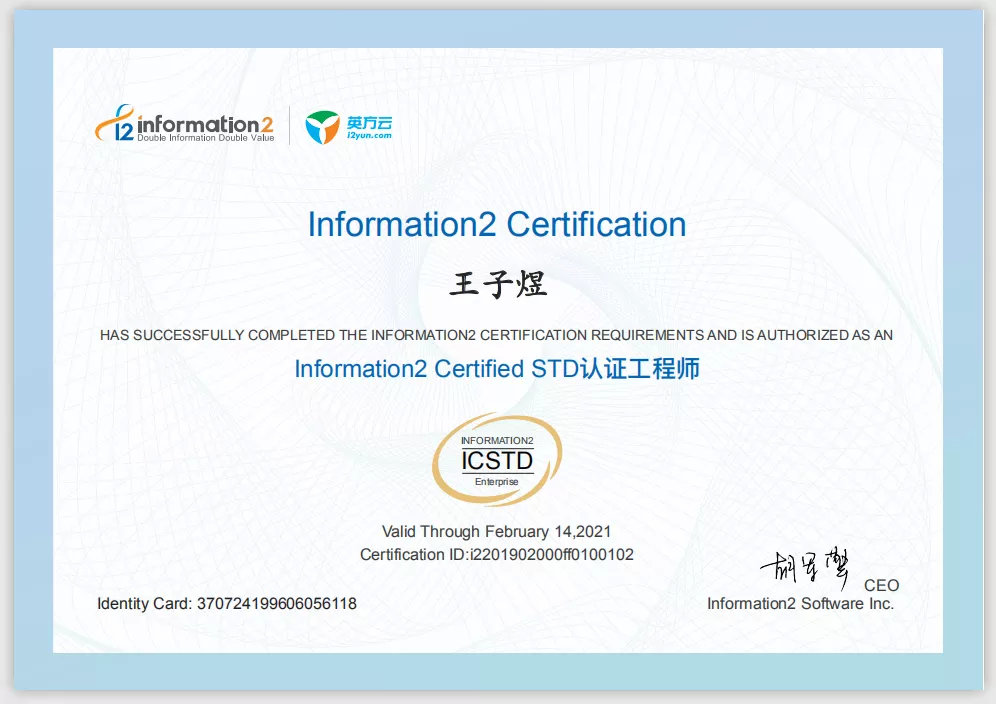对于通过英方认证工程师培训的学员们,英方软件将颁发正式的认证工程师证书。同时,欢迎通过本次考核的工程师们继续挑战“英方高级认证工程师”的认证证书。