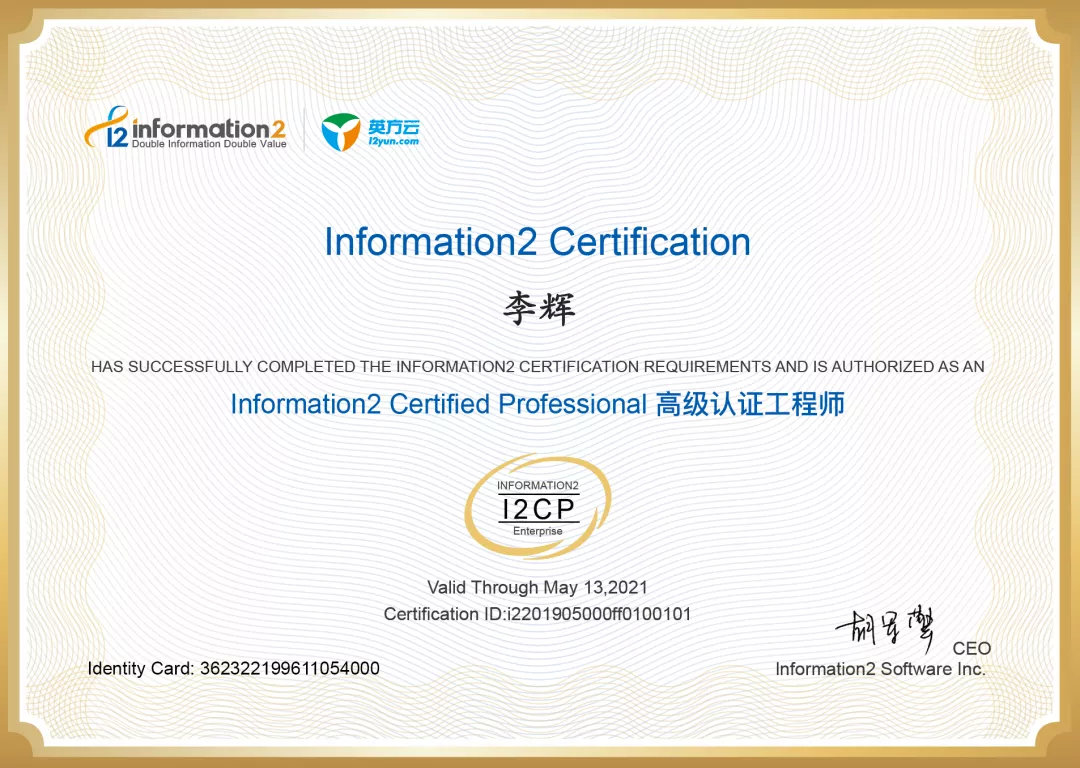▲英方高级认证工程师证书样板