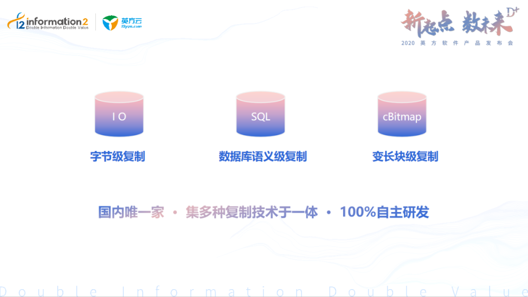 从技术角度看,在字节级复制、数据库语义级复制、变长块复制等数据复制方面,不管是单一技术性能的 PK,还是产品的组合拳,英方在用户全场景的使用中优势非常明显。此外,英方是国内唯一集多种数据复制技术于一体,且技术 100% 自主研发的基础软件厂商,符合当前国产化发展趋势。