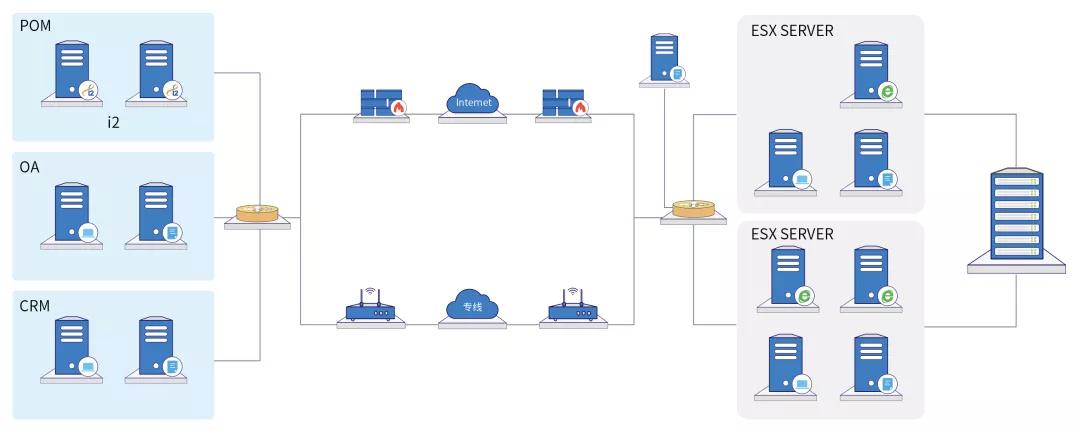 英方为复星旗下某地产企业提供的 OA、CRM、POM 灾备解决方案,通过 i2COOPY 对应用底层数据库进行实时数据保护。同时,利用 i2Availability 实时监控系统运作状态,一旦源端的 OA、CRM 等应用系统发生宕机等突发情况,将在秒级内实现同城灾备中心的业务接管,保证集团应用系统的可用性。