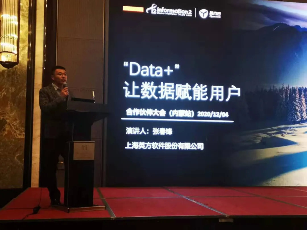 本次大会,英方软件作为主办方之一,由华北区域技术经理崔立达和华北区域销售经理张春锋,就新常态下的数据产业安全和管理问题,分别作了《“Data+”以技术成就价值》和《“Data+”让数据赋能用户》的精彩演讲。