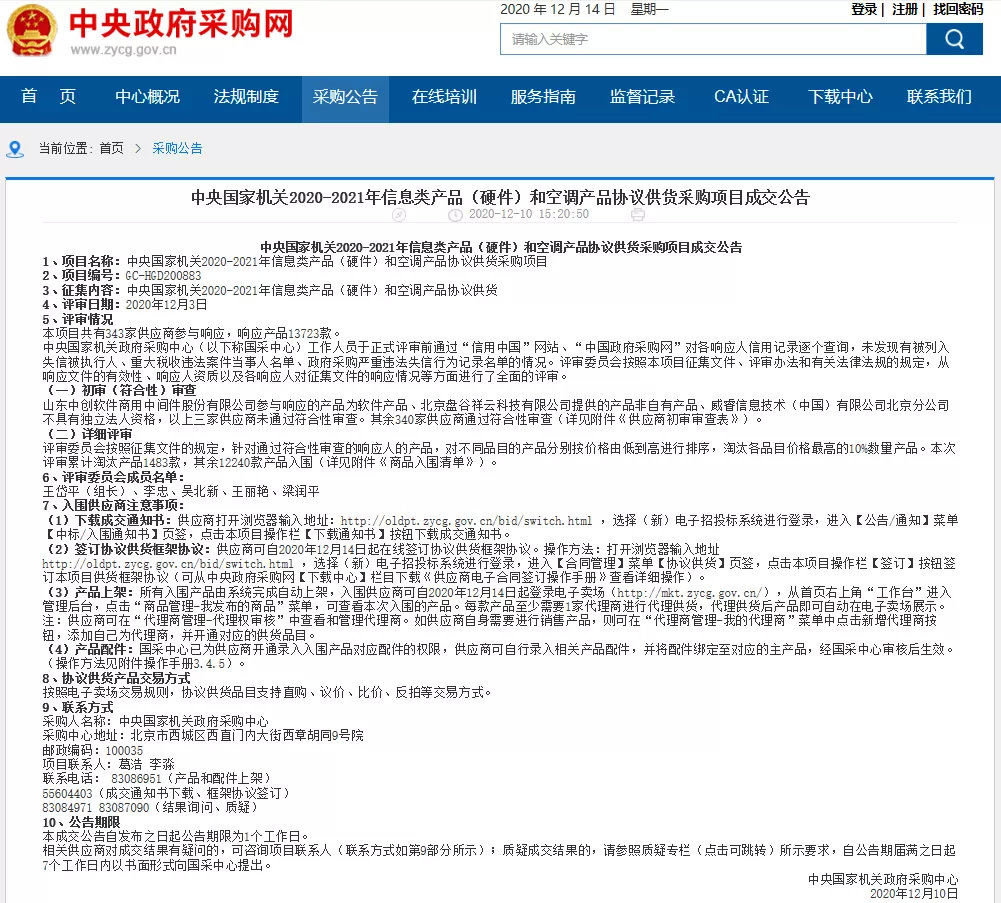 “中央国家机关信息类产品协议供货采购项目”(以下简称“央采”),由中央国家机关政府采购中心组织招投标,是中国政府采购领域级别最高、覆盖面最广的采购项目。采购单位覆盖中央直属上万个机关单位,对投标企业产品质量、技术实力、企业资质等各方面综合标准要求极高,审核严苛优中选优,是政府采购的风向标,对地方采购具有重要指导意义。